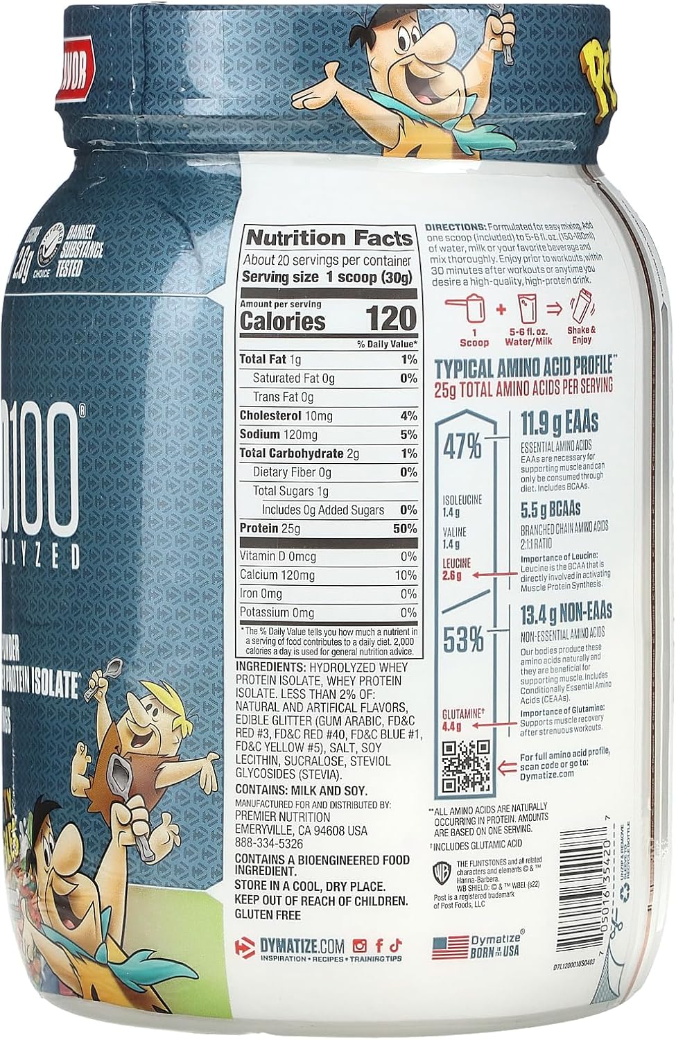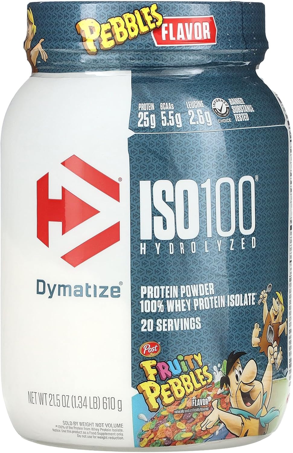 Dymatize ISO100 Whey Protein Powder Isolate, Fruity Pebbles, 25g of Protein, 20 Servings, 5.5g BCAAs, Less Than 120 Cal., Gluten Free, 1g Fat, 1g Sugar, 2g Carb